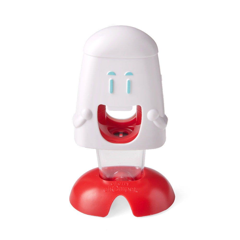 - Simply place a cherry inside, press down the head, and the pit drops into the container—no splatter, no hassle
