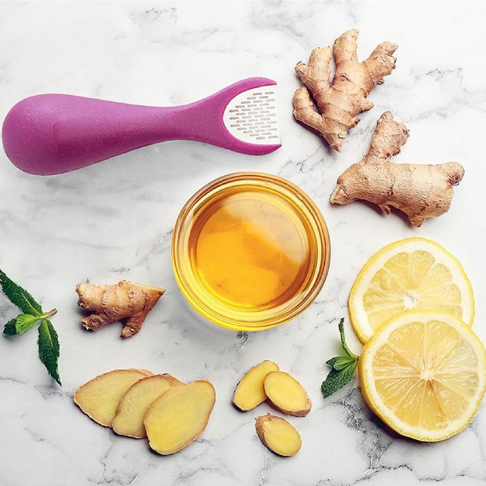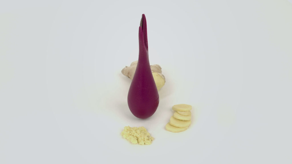 - 3-in-1 tool peels, grates, and slices ginger with ease